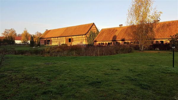 Lunchen började serveras från kl. 12.00. Så jag hade lite tid över. Det fick bli en promenad längs Pisa River som slingrade sig genom det idylliska landskapet. Ekarna blandades med lönnar och löven på marken prasslade vilket höjde trivselfaktorn med 1000. På vägen tillbaka mot gården passerade jag stora hagar med både halvblod, new forest ponnys, ardenner och frieserhästar. Det ska tilläggas att Pałac i Folwark Galiny inte bara har ridskoleverksamhet, de erbjuder även körning med häst och vagn samt bedriver avel i mindre skala.