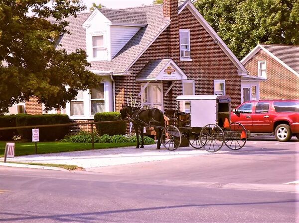 Sedan hämtade bussen upp oss och körde till Lancaster County och det Amish-samhälle som finns där. Det ingick en Buggy Ride i resan vi bokat, alltså skjuts med häst och den typiska Buggy Ride som Amish använder sig av. Men vagnen var en stor vagn för typ 15 personer och kusken vi fick var född Amish men levde inte så längre. Så han var inte ens klädd som de andra Amish-kuskarna. Så det var en rejäl besvikelse. Men han var väl insatt i deras tro och hur Amish lever tillsammans. Här följer en kort version av allt han berättade… Barnen i en Amish-familj går i skolan upp till 8:e klass, sedan får de börja arbeta hemma. Den yngsta sonen i familjen är den som får ärva gården. Resterande barn (7,4 barn i snitt per familj) måste alltså flytta och bilda familj någon annan stans. När Amish-folket kom till Pennsylvania från Europa var de runt 250 stycken. Nu räknar man med att det finns 300 000 Amish och de bor nu utspritt i 30 av USA’s stater.