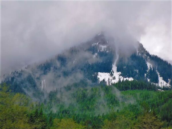 Vi fortsatte längs I-90-East och vi började skymta stora bergsmassiv borta vid horisonten. Det var Cascade Range som tornade upp sig långt där borta och vi körde inte länge förrän vi var mitt bland dessa berg. Cascade Range stoltserade magnifikt på båda sidor om vägen och det var vackert att se de snöklädda bergstopparna med bitvis dimma kring sig. Ju högre upp i bergen vi kom desto lägre sjönk temperaturen, som lägst var den 0°C. Vid ett tillfälle började det snöa och längs vägen passerade vi upp till 2 meter höga snövallar! Vi var inte säkra på om vår hyrbil hade vinterdäck, så vi fick köra rätt sakta då. Det var en lättnad när snön försvann och landskapet övergick till mer slät och odlad mark igen.