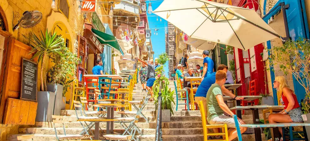 Valletta er kanskje en av de mindre hovedstedene i Europa, men er til gjengjeld proppfull av kultur og opplevelser. Her er det mer enn nok å se: UNESCO beskriver det til og med som en av de mest konsentrerte historiske områdene i verden. Det mest spesielle ved den barokke byen er de trange gatene med fargerike vindusskodder og utstikkende balkonger i sterkt grønt og rødt i kontrast til de rustikke husene. Byen er rik på ting å se og oppleve, og du finner alt fra store, vakre kirkekupler og palasser til fontener, statuer og smale sidegater fylt med kafeer og små butikker. I Vallettas storgater finner du også internasjonale merkevarer og bra shopping. Malta har mer enn 300 soldager i året, og har noe av det blåeste, klareste vannet i Middelhavet. Kun en halvtime med buss fra byen finner du Mellieha Bay hvor du kan ta deg en dukkert.