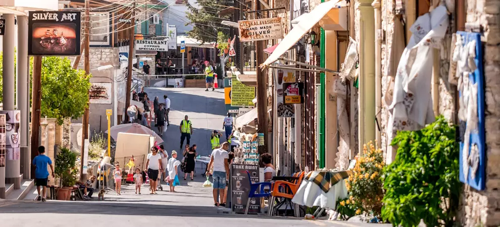 En liten landsby oppe i fjellene mellom Limassol og Larnaca med bare 1100 innbyggere, som er kjent for sitt flotte håndverk. Her sitter kvinnene i byen utenfor sine hus og broderer flotte mønster på duker og klær. Lei en bil og kjør hit tidlig på dagen så slipper du å gå i kø med andre turister, og vær ikke redd for å parkere bilen og gå deg vill i noen av de koselige, brosteinbelagte bakgatene.
