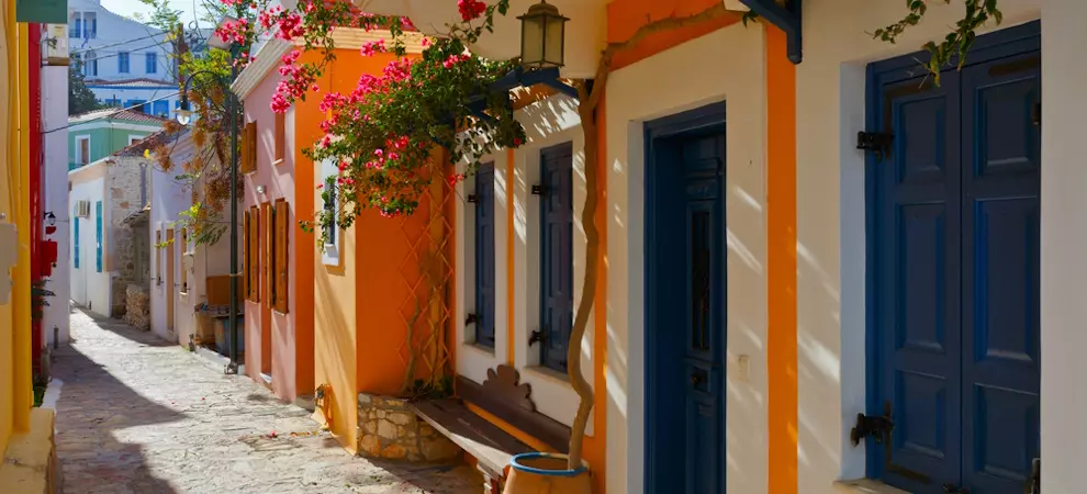 Ofte kalt “den fargerike øya” og helt klart en av de vakreste øyene i Hellas. De pastellfargede husene klamrer seg fast i en skråning ovenfor den pittoreske havnen. Utforsk øyas mange badeviker med stein- eller klippebad, og nyt det krystallklare vannet.
