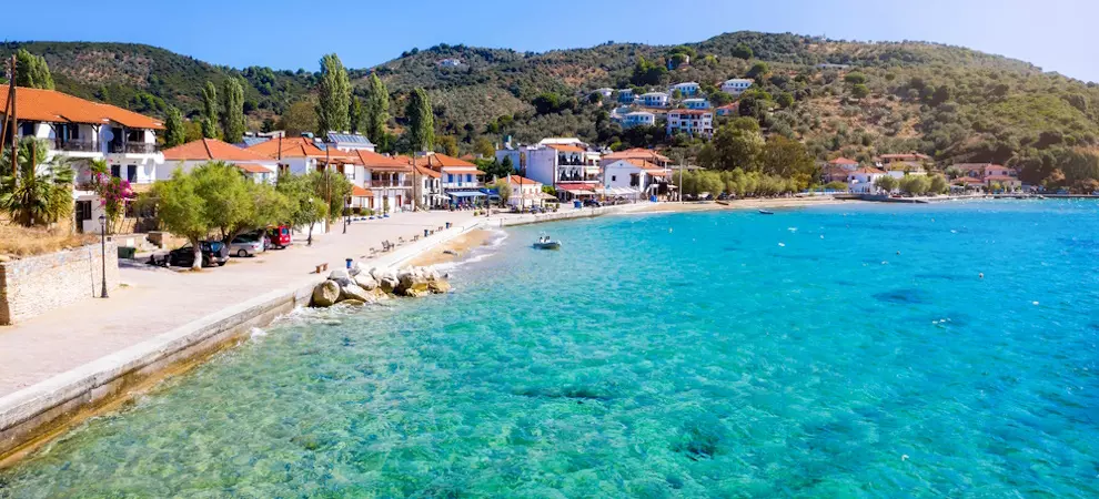 Her finnes bare et hotell, ingen biltrafikk og asfalterte veier. Passer perfekt for deg som liker å gå på tur da det finnes flere bra turstier. En koselig liten landsby ligger nede ved havet med noen få tavernaer og minimarkeder, mer genuint gresk en dette blir det ikke.